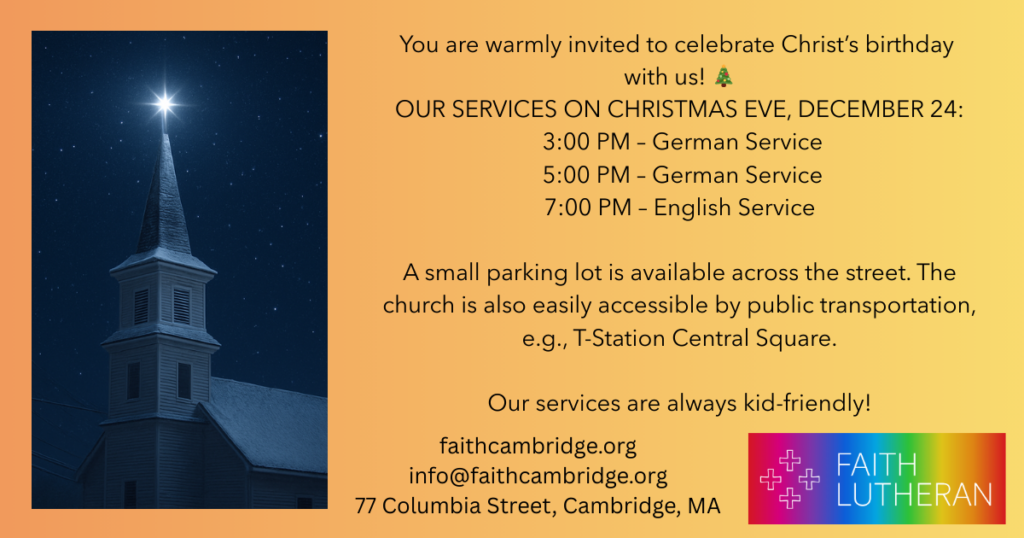 NOTE: The only Christmas service that has a livestream is the first service in German at 3:00 pm (EST), which can be watched afterwards at any time that is convenient: