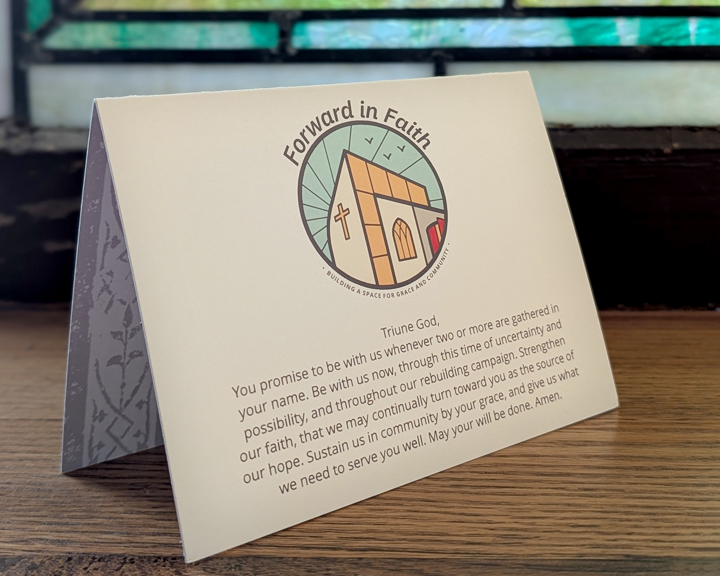 Prayer is a vital part of our life as Christians. Between now and our Forward in Faith Commitment Sunday on December 14, we invite you to keep Faith in your prayers as we take the next step toward rebuilding our church. Please place this prayer card on a table, windowsill, or nightstand as a reminder.