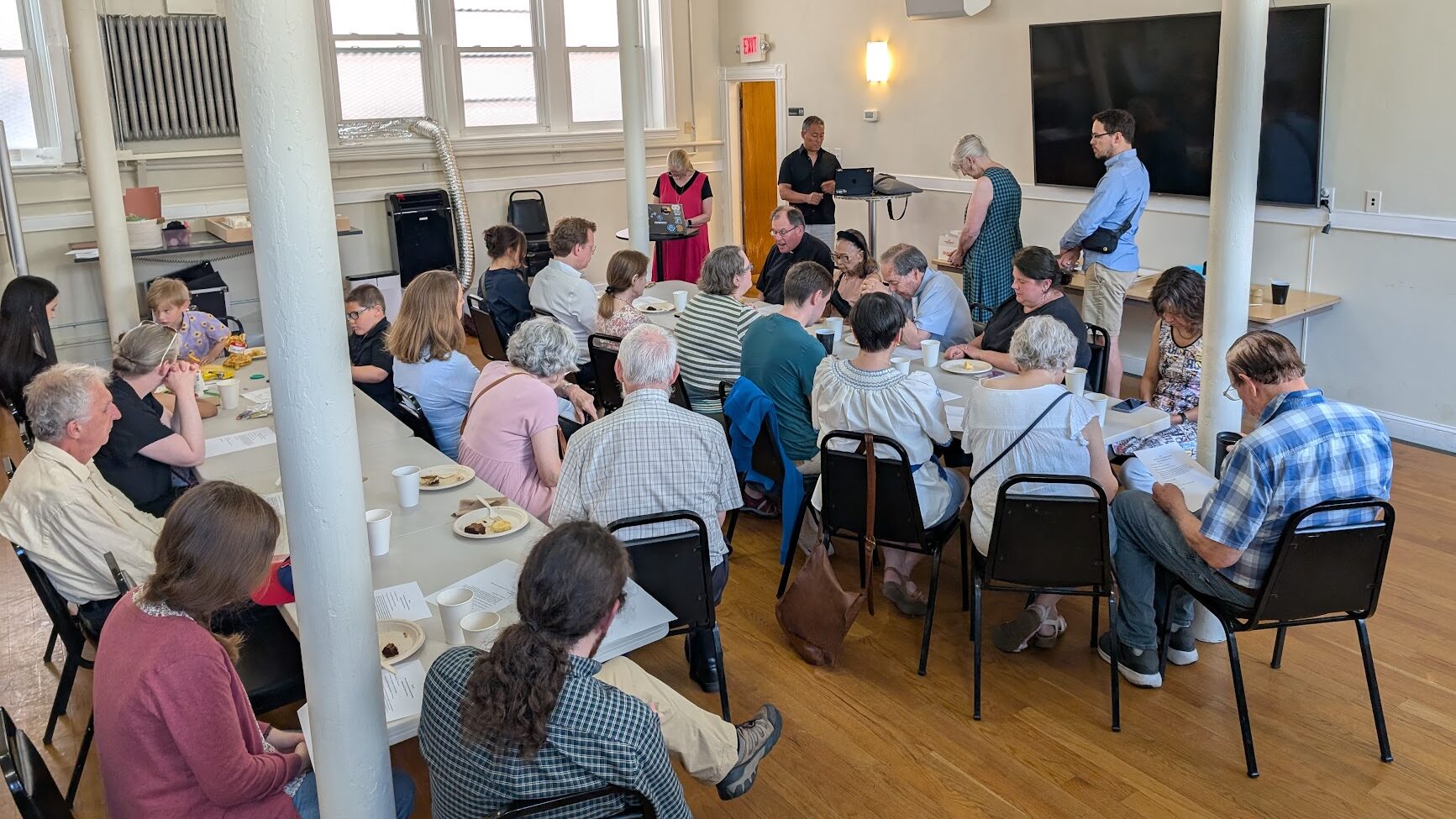 After our special bilingual German–English service, we made our way downstairs to the fellowship hall for a warm and lively brunch. This was a chance to slow down, talk with one another, and catch up. Later in the morning, we introduced the Forward in Faith campaign information packets and shared dessert together. The kids took their own turn, with creative interpretations of the new building, which brought a lot of smiles.