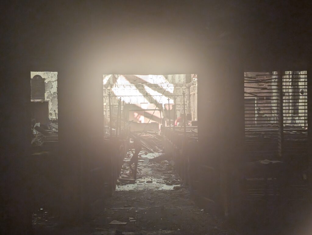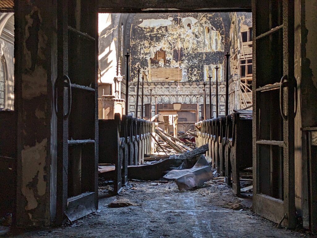 On Easter Sunday last April we lost our beloved building at 311 Broadway to a 6-alarm fire, which we now know was caused by arson. Our congregation has found a temporary home at the north campus of Pentecostal Tabernacle at 77 Columbia Street, but our building has been sitting charred and empty for almost a year. Working with structural engineers we learned that the church structure is not stable enough to simply be restored, so, sadly, our 114-year old church will have to be fully demolished this spring.