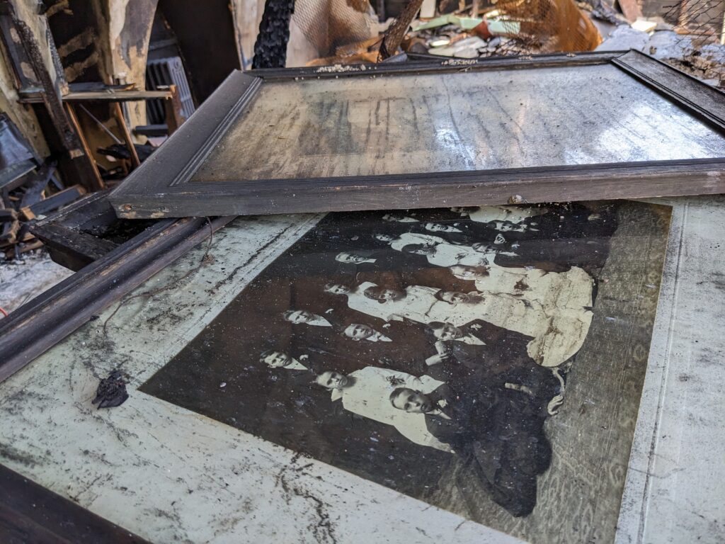 Days and weeks after the fire, we step inside to see for ourselves what has been lost, and what remains. There isn’t much left to salvage, just a few scattered things, small reminders of a place that once held so much.