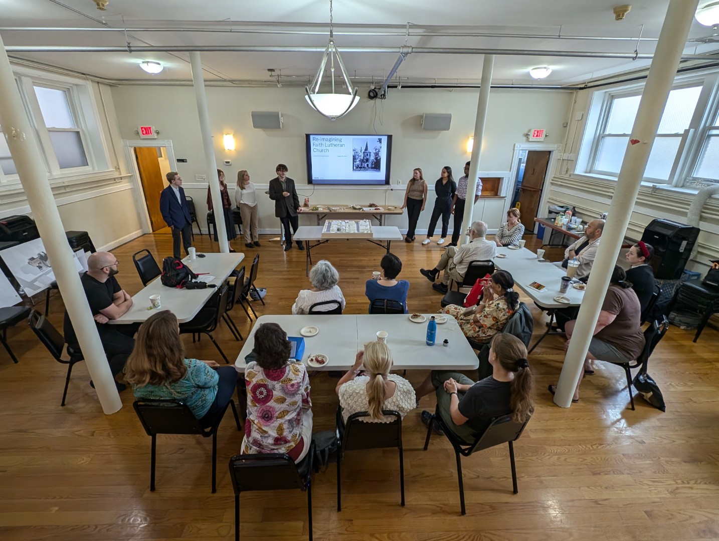 After our special bilingual German–English service, we made our way downstairs to the fellowship hall for a warm and lively brunch. This was a chance to slow down, talk with one another, and catch up. Later in the morning, we introduced the Forward in Faith campaign information packets and shared dessert together. The kids took their own turn, with creative interpretations of the new building, which brought a lot of smiles.